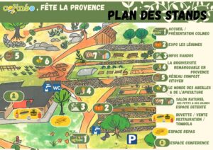 Village des stands de Colinéo : Présentation de l’association, randonnées nature et patrimoine, biodiversité Provençale, exposition des variétés de saisons cultivées sur le Conservatoire des Restanques, apiculture, salon naturel des petits & grands : jeux ludiques, ateliers petit bricolage, coin détente, bibliothéque, jeux de piste, …